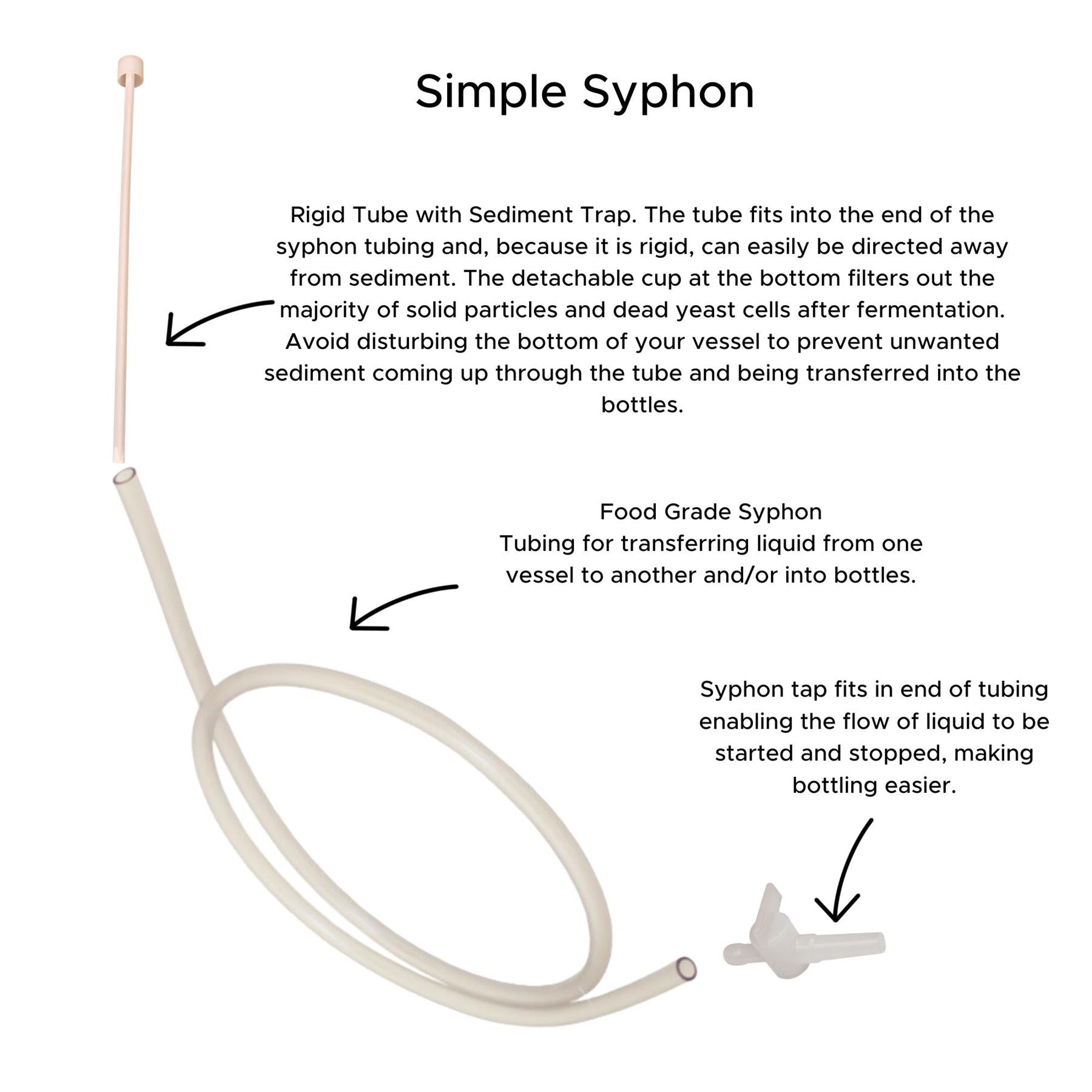 1 simple syphon with sediment trap and tap to control the flow of liquid when racking and bottling