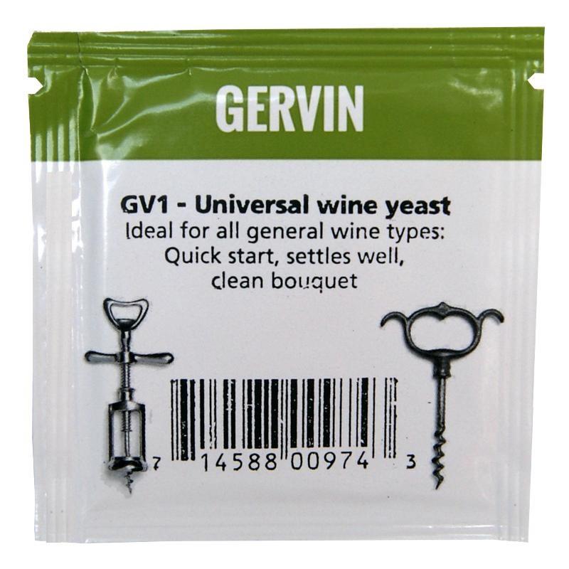 - 1x Gervin GV1 Universal Wine Yeast, 1x Gervin GV3 Sparkling Wine Yeast, 1x GV8 Gervin Red Table Wine Yeast and 1x GV9 White Wine Yeast.