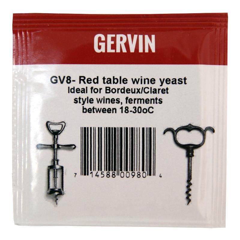- 1x Gervin GV1 Universal Wine Yeast, 1x Gervin GV3 Sparkling Wine Yeast, 1x GV8 Gervin Red Table Wine Yeast and 1x GV9 White Wine Yeast.