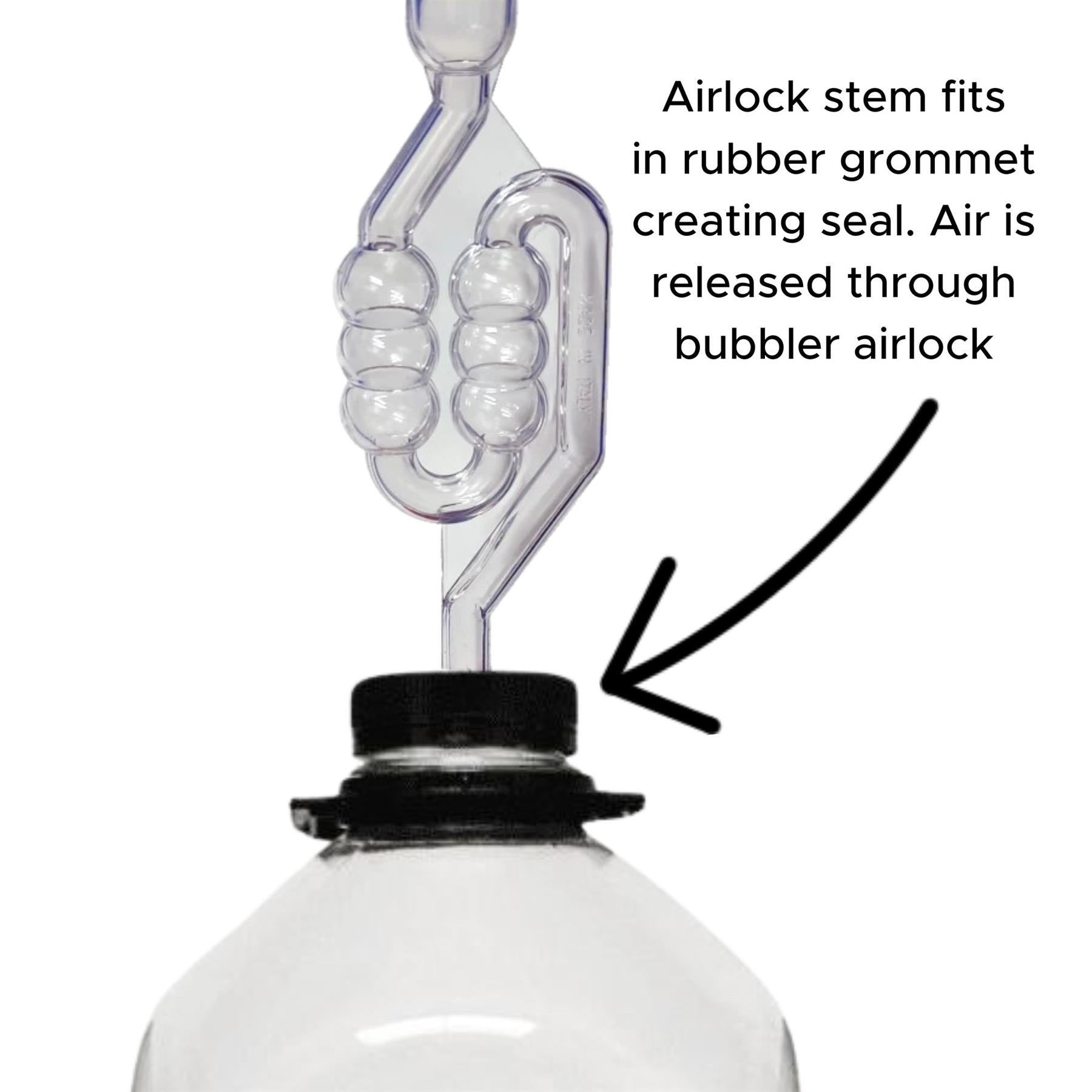 1 screw cap for the demijohn with a bored hole, fitted with a pvc grommet to keep an airlock in place